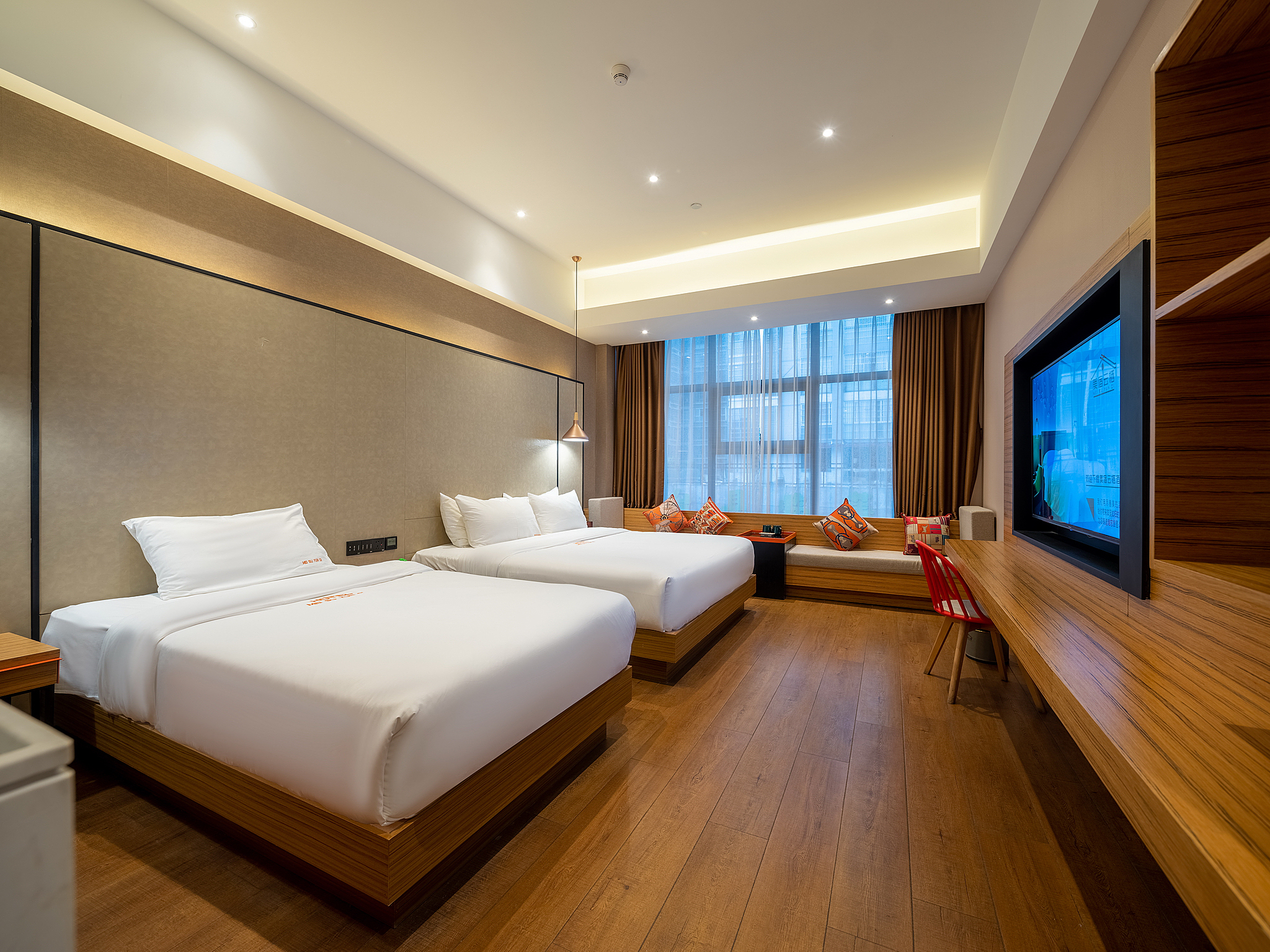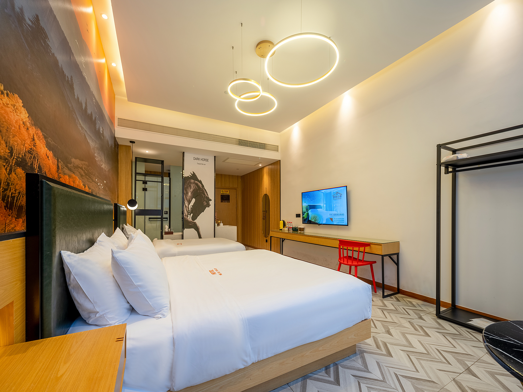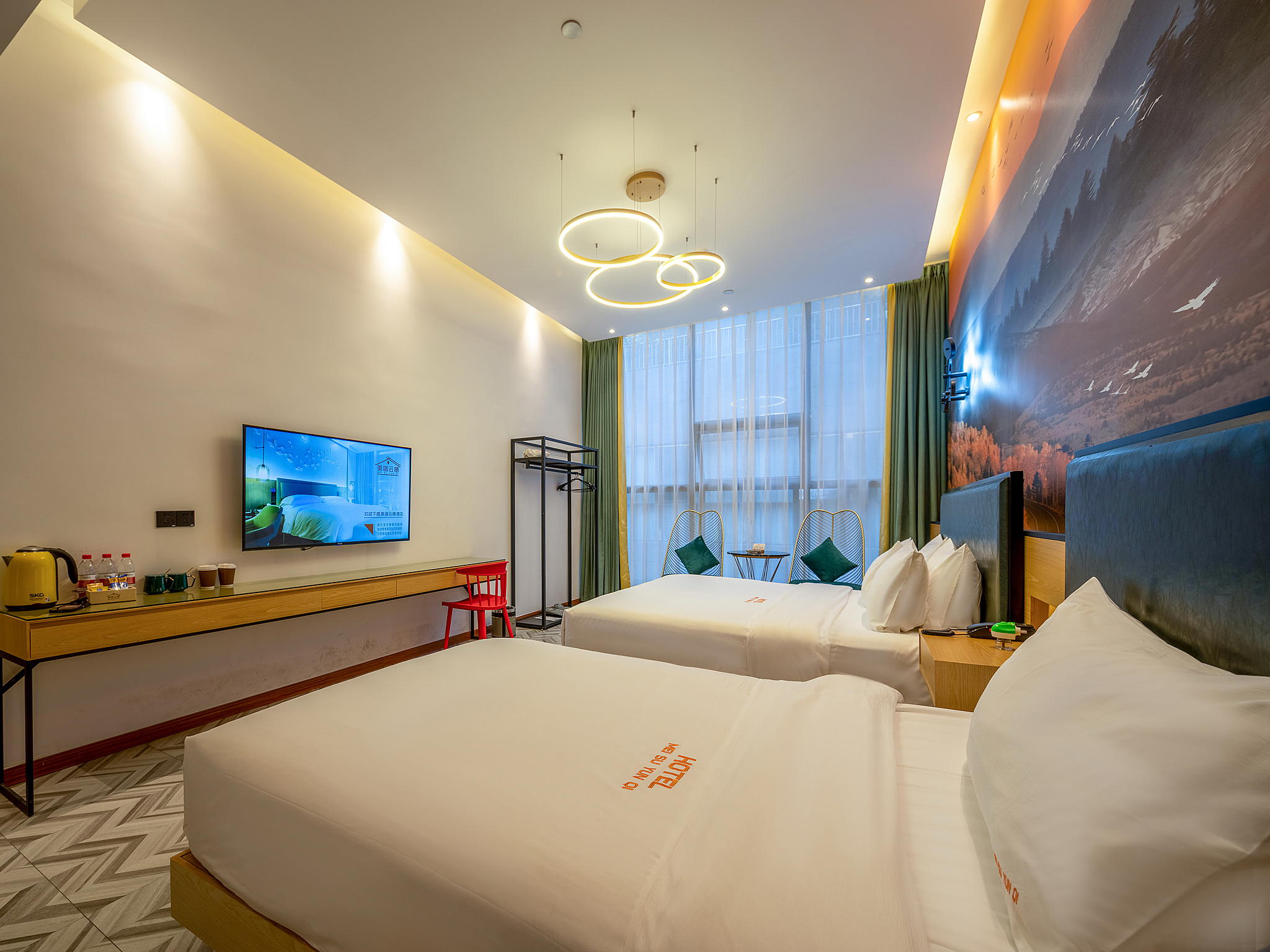 北欧标间(零压乳胶床垫+书桌+1张大床+1张小床)