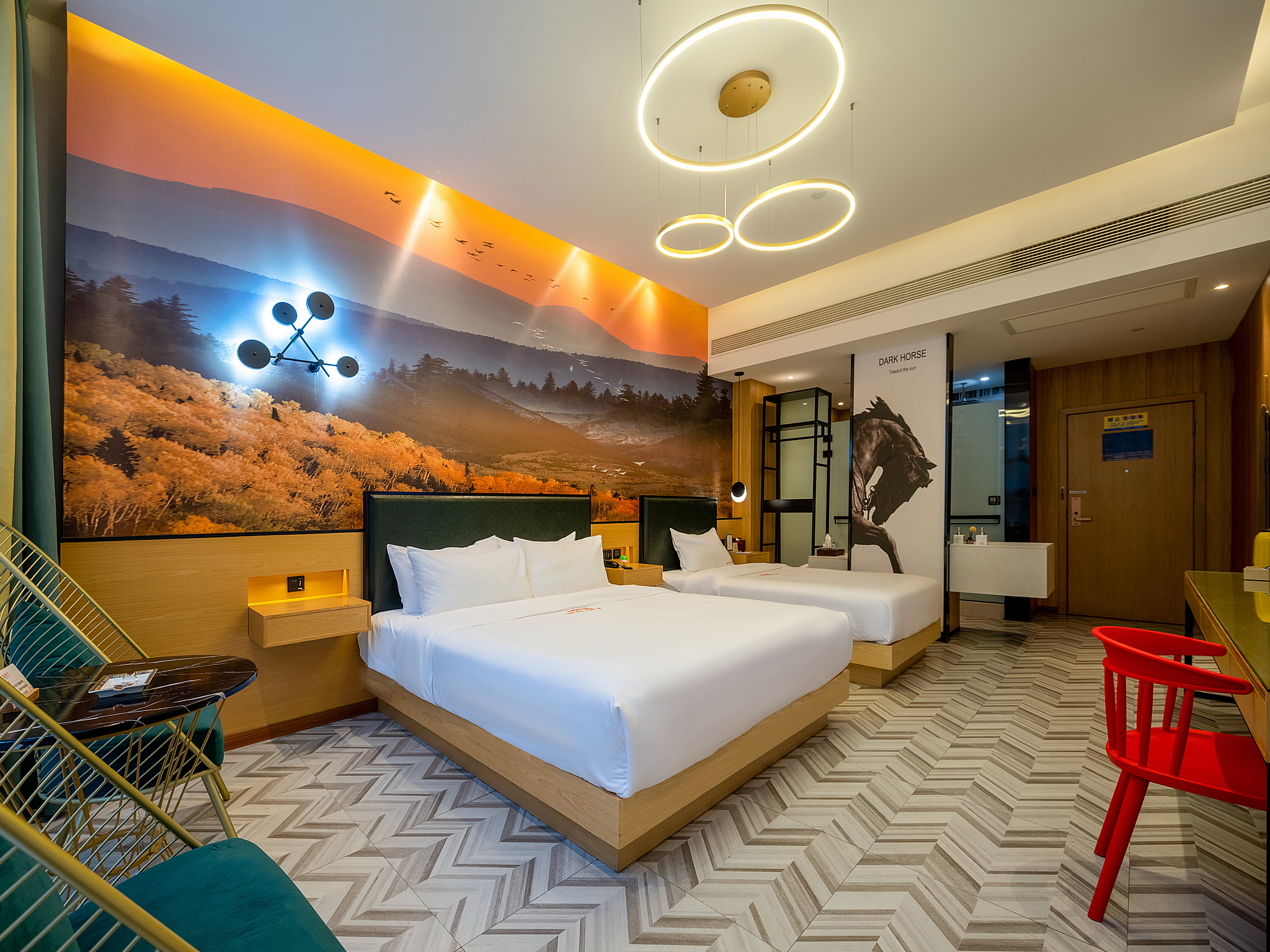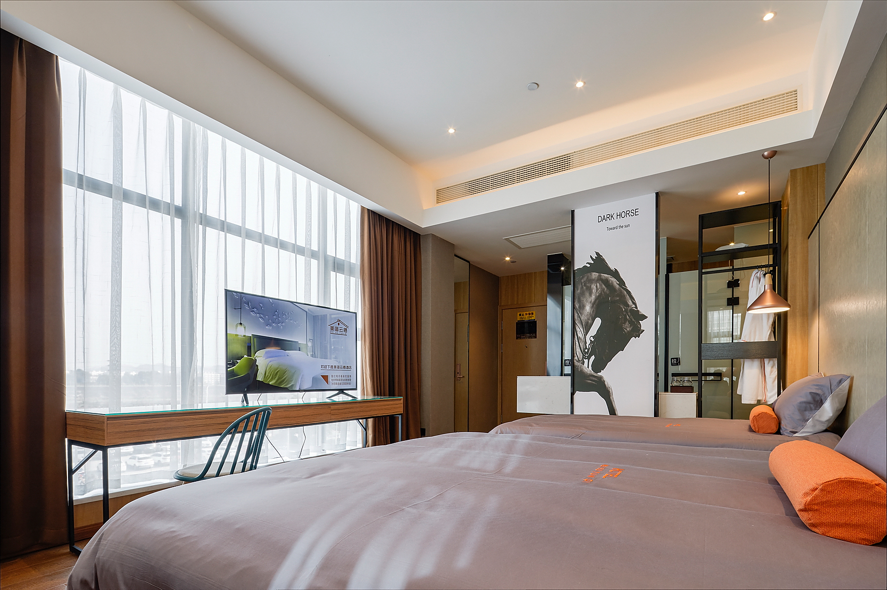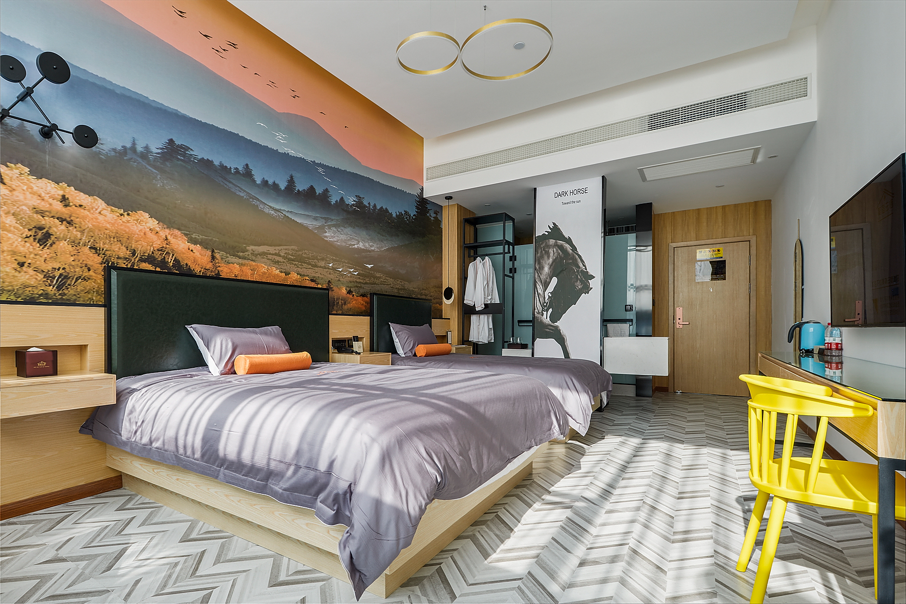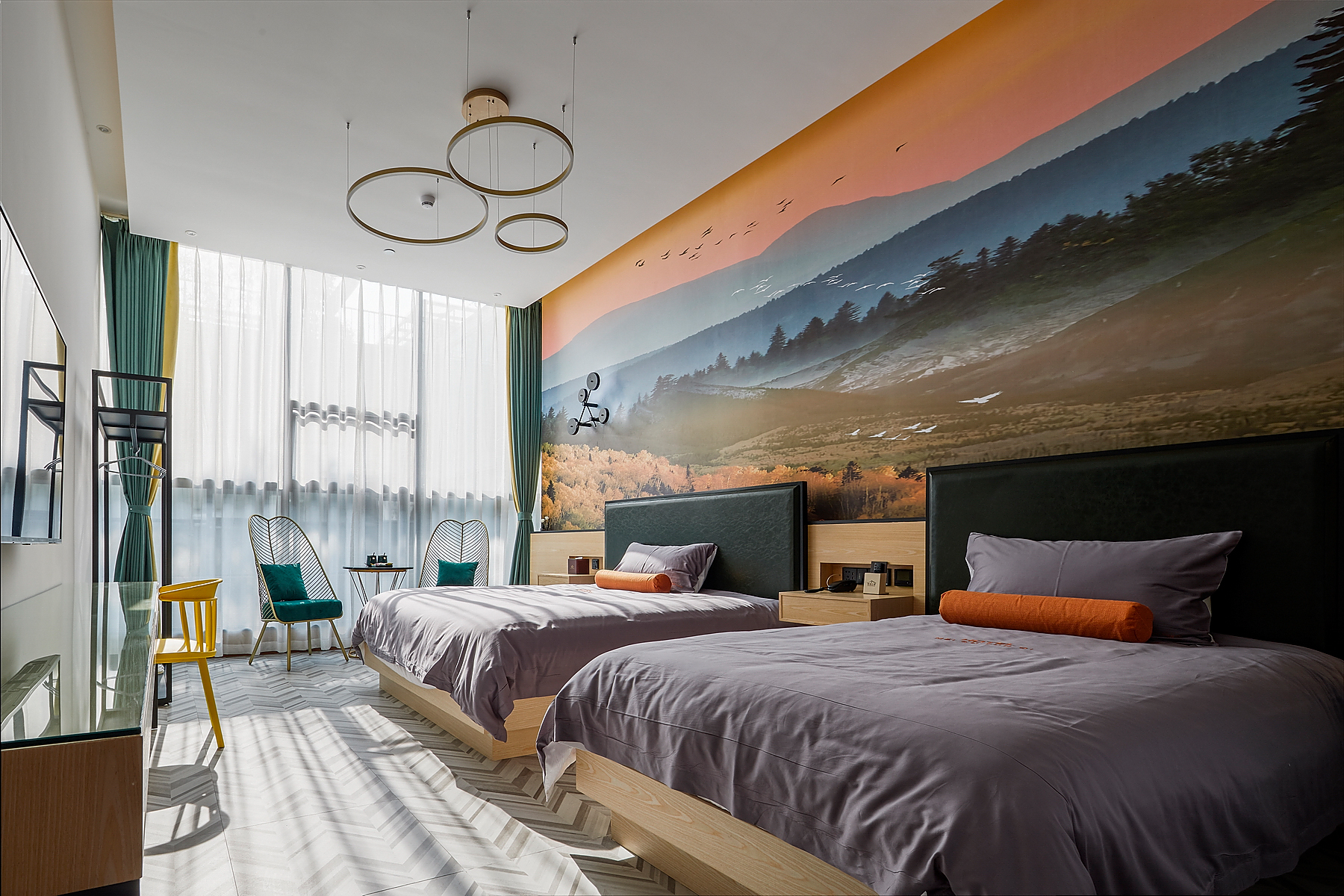 北欧标间(零压乳胶床垫+书桌+1张大床+1张小床)