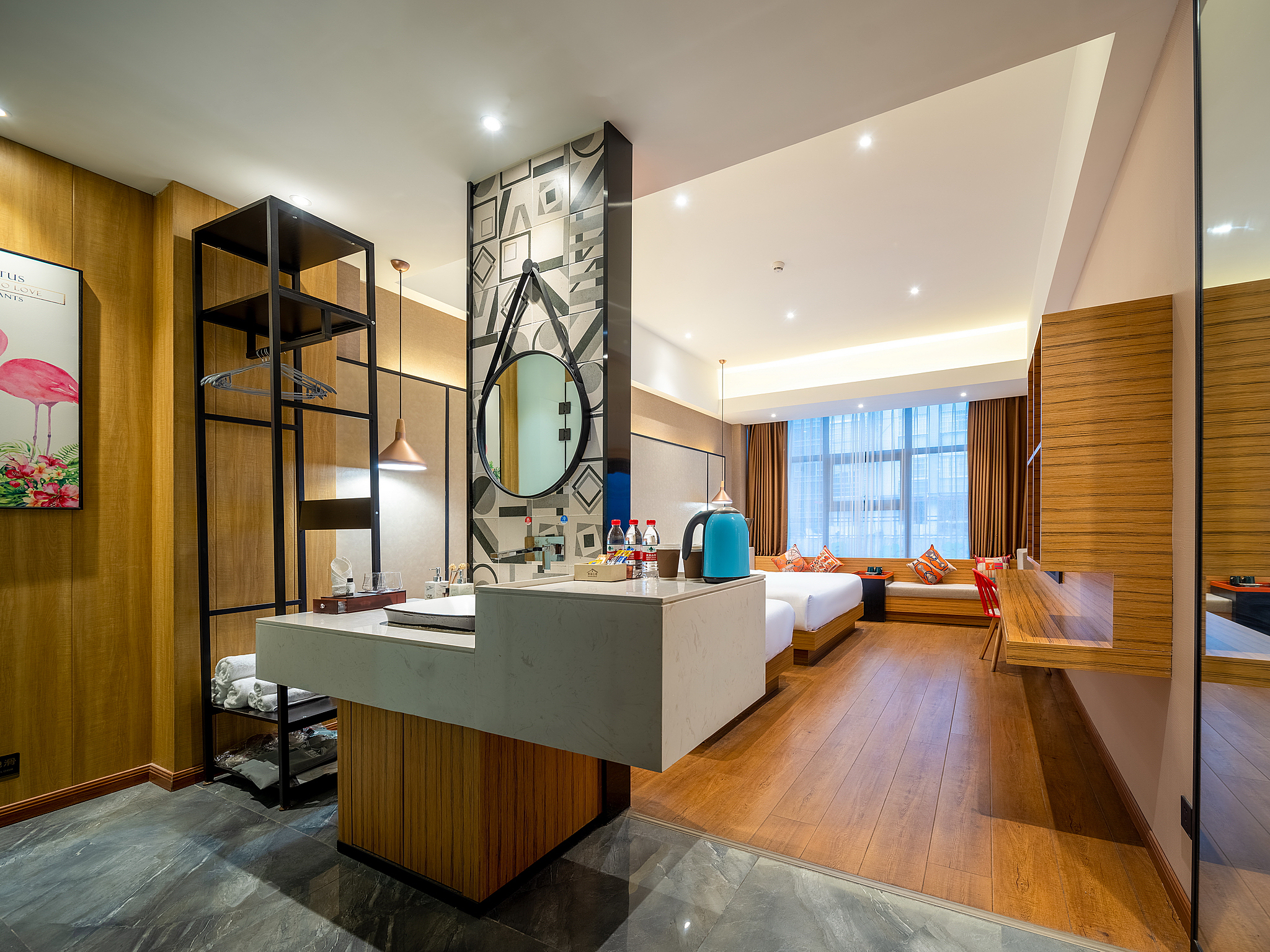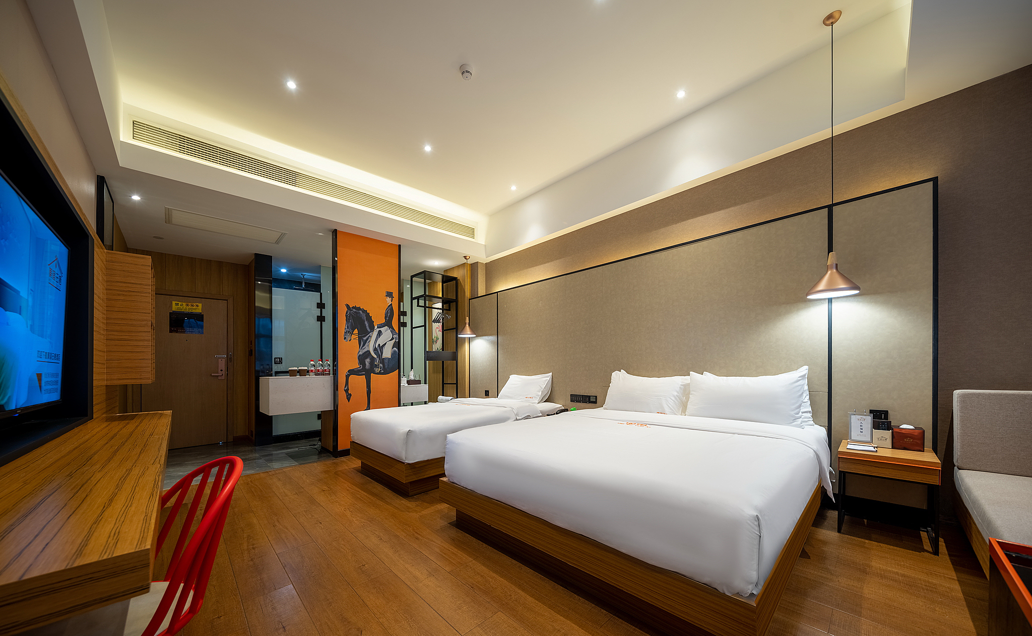 港式标间(休闲长沙发+零压乳胶床垫+书桌+1张大床+1张小床)